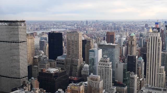 И наконец, мы не могли покинуть Нью-Йорк, не полюбовавшись закатом на крыше небоскреба. Такого рода местами город богат: можно подняться на Empire State Building или на обсерваторию нового World Trade Center. Цены везде примерно одинаковые, в районе 30 долларов с человека. (хотя по-моему, на Empire State на рассвете и закате дороже). Наш же выбор пал на Top of the Rock на 60-м этаже Рокфеллеровского центра. Мы присмотрели это место еще в первый день и терпеливо ждали ясной погоды.